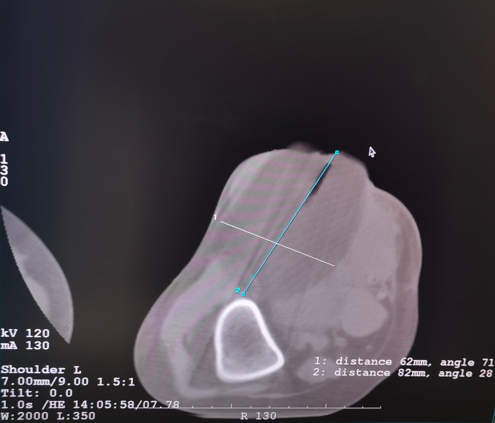 女,42歲,復(fù)發(fā)性脂肪瘤,病灶位于右側(cè)膝關(guān)節(jié),直徑大小13cm。采用雙針方案,共進(jìn)行6個凍融循環(huán),最大冰球直徑達(dá)8.2cm,術(shù)中多方位治療全面覆蓋病灶范圍。患者術(shù)后狀況良好。